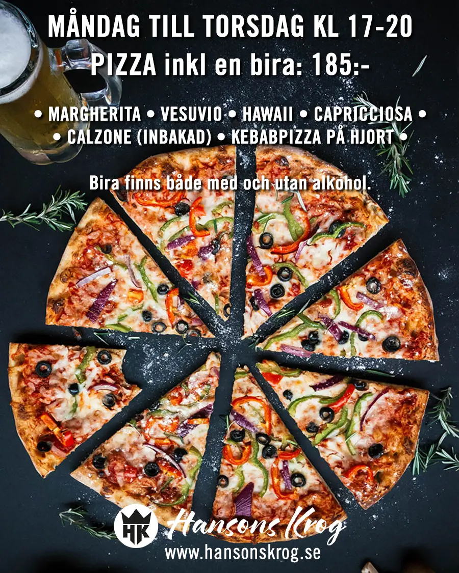 På Hansons Krog kan du slå dig ner, koppla av och äta riktigt gott. Menyn bjuder på allt från klassisk husmanskost till kött, fisk och pizza – rätter lagade med omtanke och inspiration från både tradition och modern matlagning.
